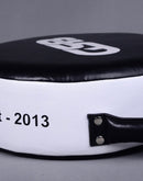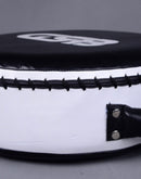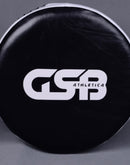 GSB Athletica's round shield is suitable for both boxing fitness & skill, as well as kickboxing. A stripped back design that allows this piece of equipment to be put to work and speak for itself. Classic black with a bold white GSB logo on the face. Featuring a vinyl outer and leather handles for super durability.